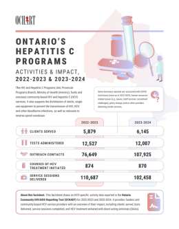 OCHART data is analyzed and the View from the Front Lines report is produced annually. This provincial summary gives community-based programs information about services, trends and client needs that they can use to improve existing services and plan new ones.