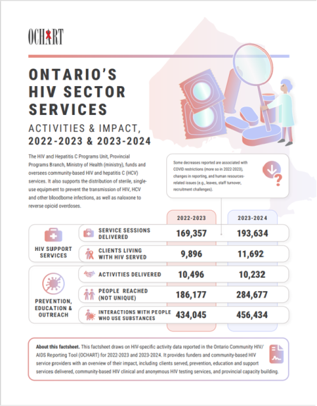 Community-based HIV/AIDS programs funded by the Ontario Ministry of Health and Long-Term Care AIDS Bureau are required to complete the web-based OCHART twice each year.